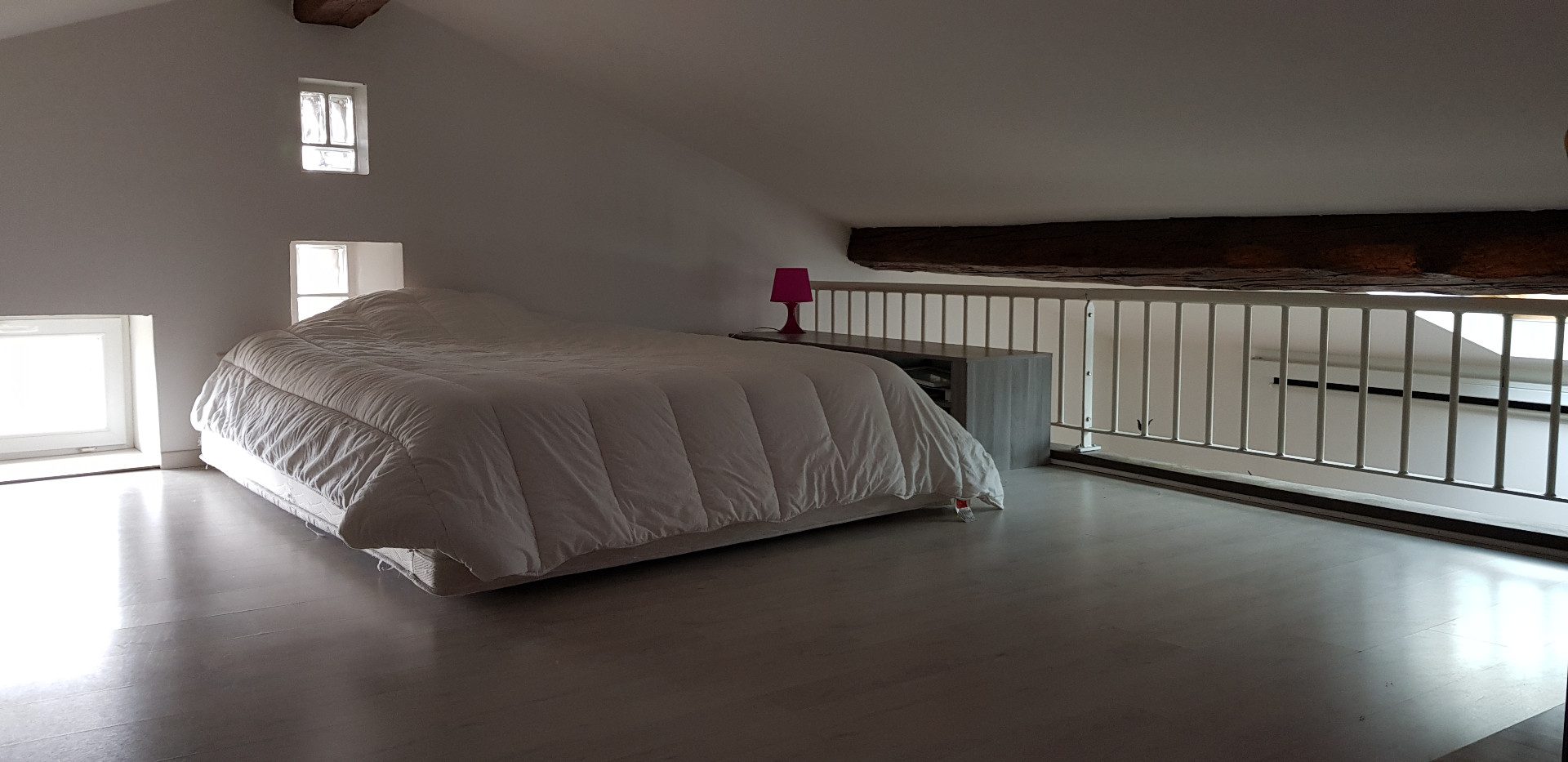 Appartement T2 Bis de 42 m² (64 m² au sol avec la mezzanine) au 2ème étage (sans ascenseur) comprenant 1 grande pièce à vivre avec cuisine équipée (four, hotte, plaques, mobilier), 1 bureau ou dressing avec placard, salle d’eau avec toilettes, 1 grande chambre en mezzanine. Chauffage individuel électrique + bloc clim. Disponible début février. Garage privatif. LOYER 600 euros HC