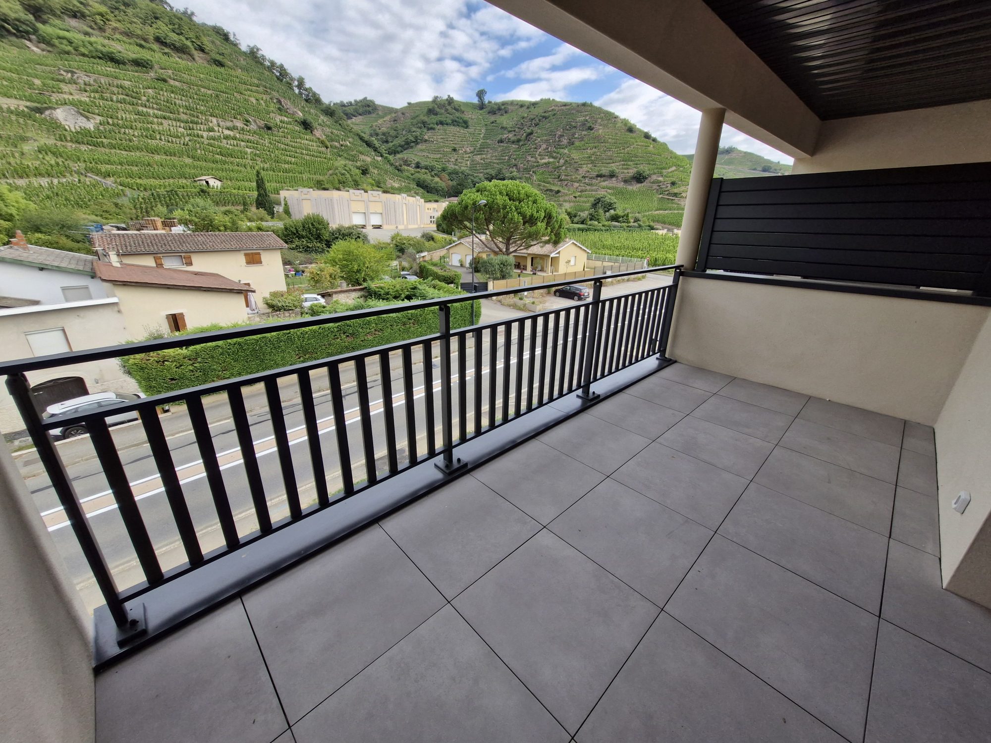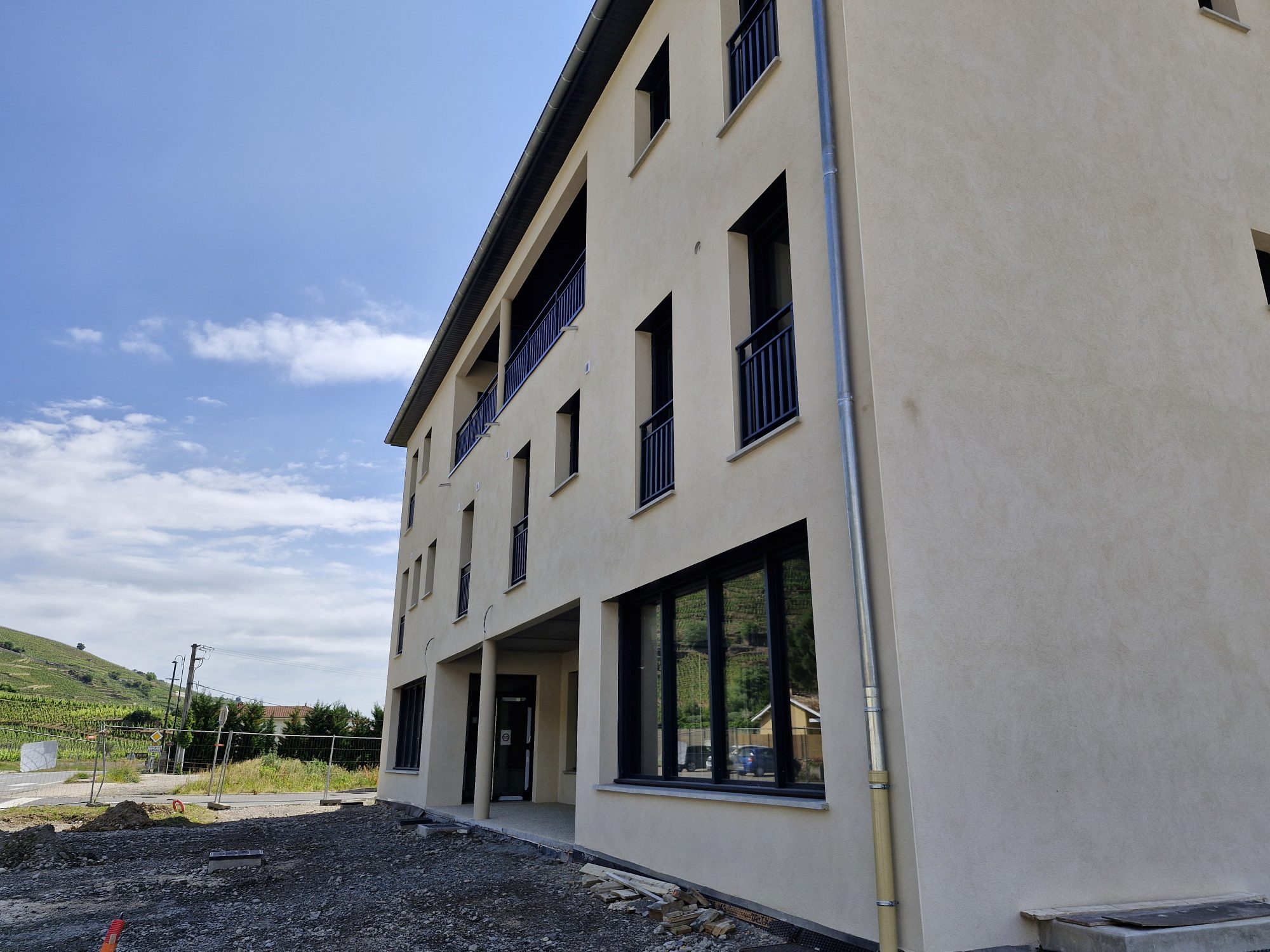 Dans petit immeuble neuf (Normes RT2020) et sécurisé, un appartement T3 de 75m² environ au 2ème étage (sans ascenseur) se composant d’une pièce de vie avec cuisine semi équipée (d’une plaque de cuisson et hotte) donnant sur terrasse (côté vignes), 2 chambres équipées de grand placard mural, une salle d’eau avec toilettes (équipement machine à laver). Chauffage par pompe à chaleur individuelle. Volets électriques. Une place de stationnement attitrée en sous sol et une cave. Local vélos / poussettes. Disponibles de suite. LOYER : 860 € / mois HC