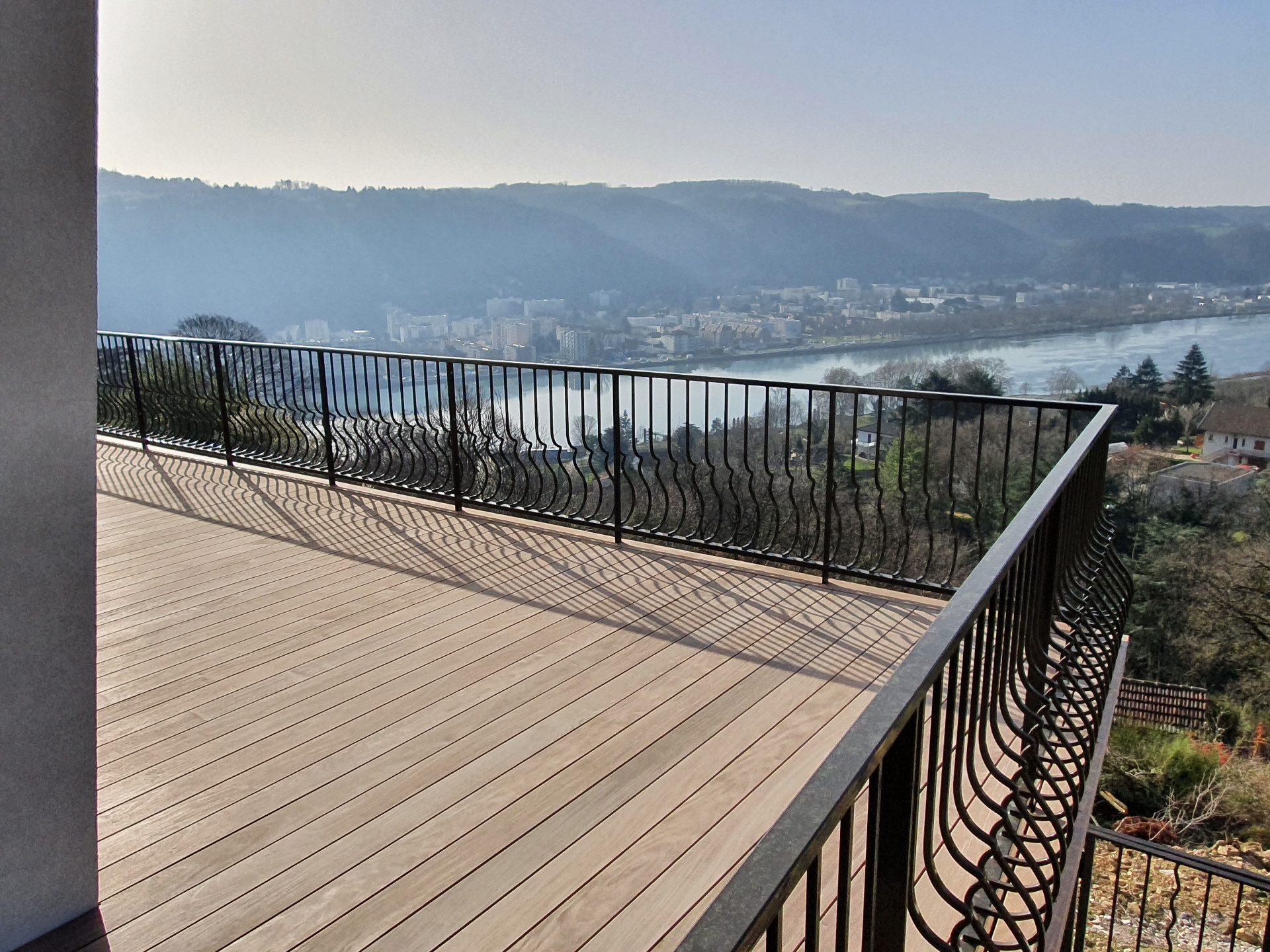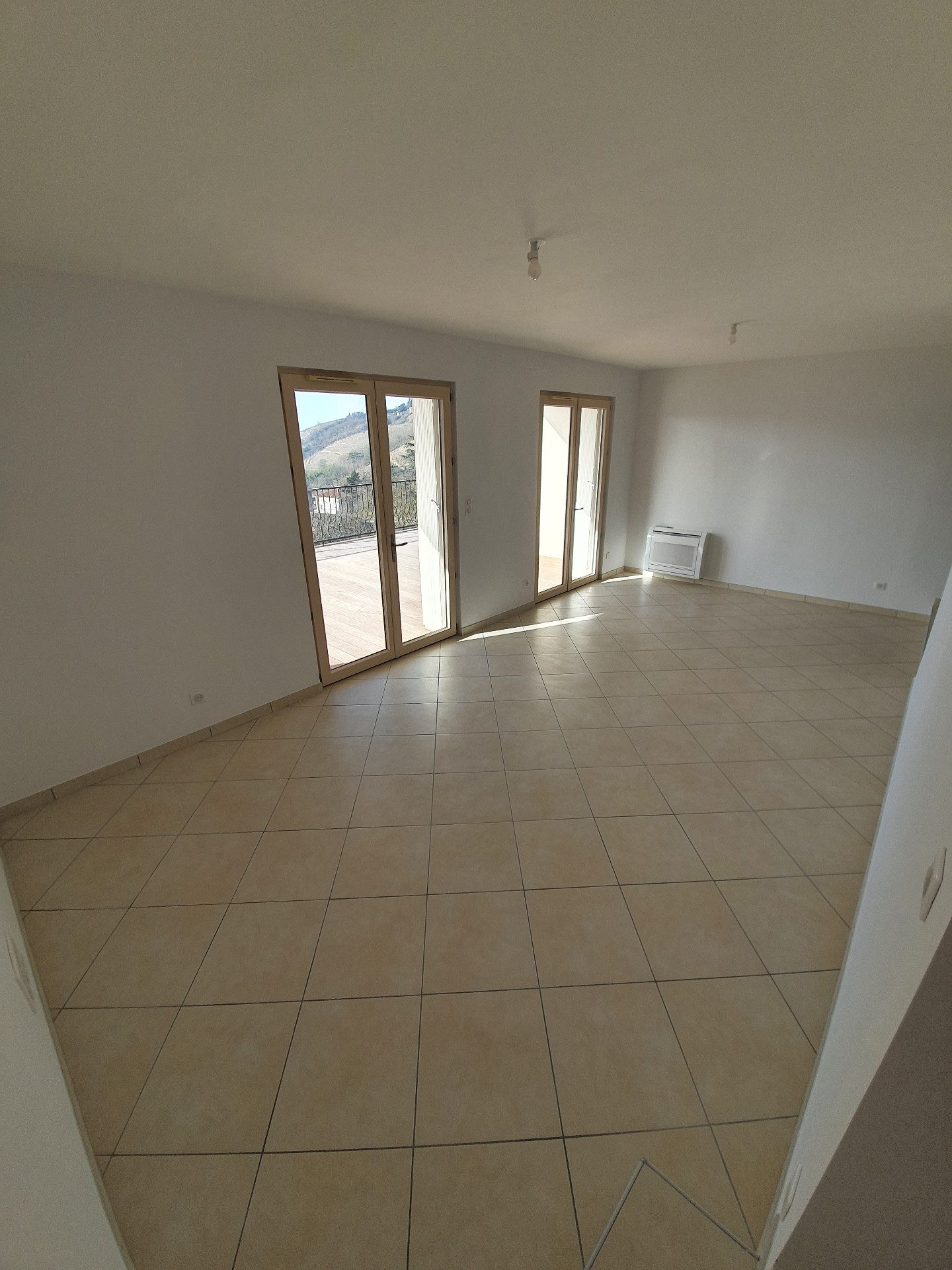 Belle propriété T6 de 154.07 m² sur les hauteurs de St Cyr sur Rhône – Magnifique vue PANORAMIQUE sur la vallée. Un vaste pièce de vie (de 32 m² environ) avec cuisine ouverte (semi-équipée d’un four, plaque de cuisson induction et hotte) donnant sur une grande terrasse, un bureau / chambre, une salle d’eau et des toilettes séparés. A l’étage, 4 chambres dont une avec accès grande terrasse. Une salle de bains avec douche et toilettes. Un garage. PAS de jardin/terrain. Chauffage & climatisation par pompe à chaleur. Disponible fin avril. LOYER : 1445 € HC / mois